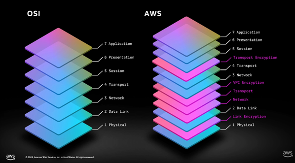 AWS 네트워크 트래픽은 고객이 제어하는 TLS/SSL 외에도 AWS 내부적으로 세 가지 추가 암호화 계층을 적용합니다.