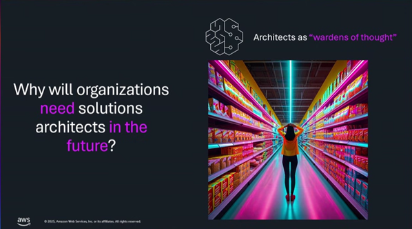 AWS re:Invent 2025의 [Navigating the future: Solutions architecture in the age of AI]을 확인해보시기 바랍니다.