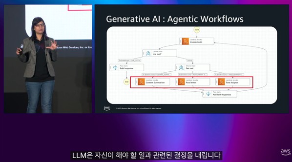 - 적용: Step Functions를 사용하여 LLM 기반의 자율 생성형 AI 에이전트 워크플로우를 구축 가능합니다 (예: 소셜 미디어 콘텐츠 용도 변경 에이전트).